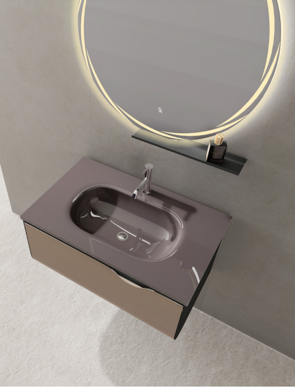 配合高温烤漆工艺,柜体不仅具有耐磨抗指纹的特性,更能完美适应卫生间潮湿环境,特别适合解决小卫生间通风不畅的难题。